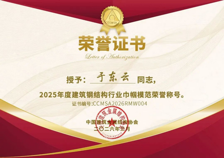 從“中國(guó)建筑金屬結(jié)構(gòu)協(xié)會(huì)所屬行業(yè)改革開(kāi)放四十年突出功勛人物”到“行業(yè)卓越企業(yè)家”,從沈陽(yáng)市“五一勞動(dòng)獎(jiǎng)?wù)隆鲍@得者到如今的“2025年度建筑鋼結(jié)構(gòu)行業(yè)巾幗模范”,一項(xiàng)項(xiàng)榮譽(yù)加身,是各級(jí)政府、行業(yè)各界對(duì)她多年耕耘的最好印證。這些榮譽(yù)的背后,是她對(duì)技術(shù)創(chuàng)新的執(zhí)著追求,是對(duì)品質(zhì)匠心的始終堅(jiān)守,更是對(duì)“產(chǎn)業(yè)報(bào)國(guó),造福社會(huì)”宗旨的躬身踐行。